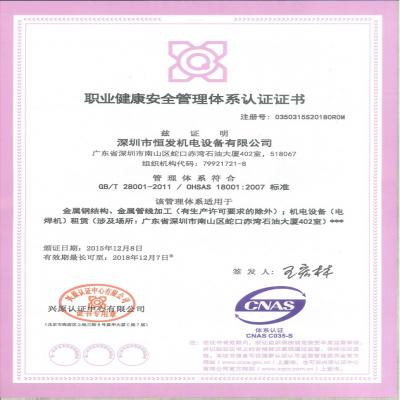 職業(yè)健康安全管理體系認(rèn)證證書