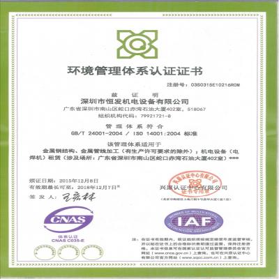 環(huán)境管理體系認(rèn)證證書(shū)